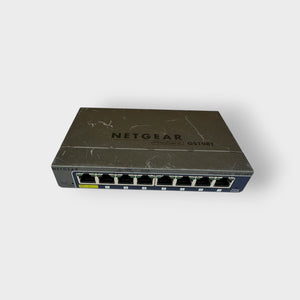 NETGEAR GS108T ProSafe 8-Port Gigabit Smart Switch | Branded Used8 Port> Netgear Switches> NETWORK SWITCHESNETGEAR GS108T Gigabit Smart SwitchNumber of Ports: 8 x 10/100/1000 Mbps Gigabit EthernetSwitching Capacity: 16 GbpsManagement Options: Web GUI, SNMP, RMON, and CLI supportVLAN Support: Yes,...